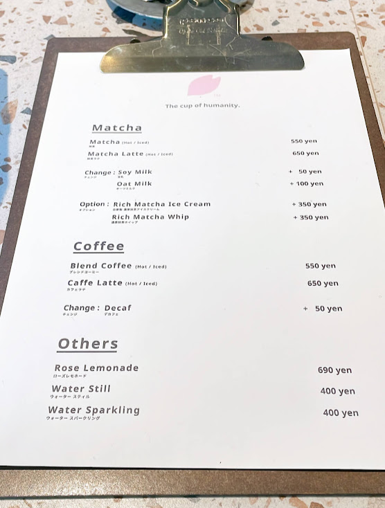 日本文化の象徴として扱われる桜をメインイメージとされ、日本のカフェ文化を世界に広めたいとの思いからロゴや内装デザイン設計に反映。