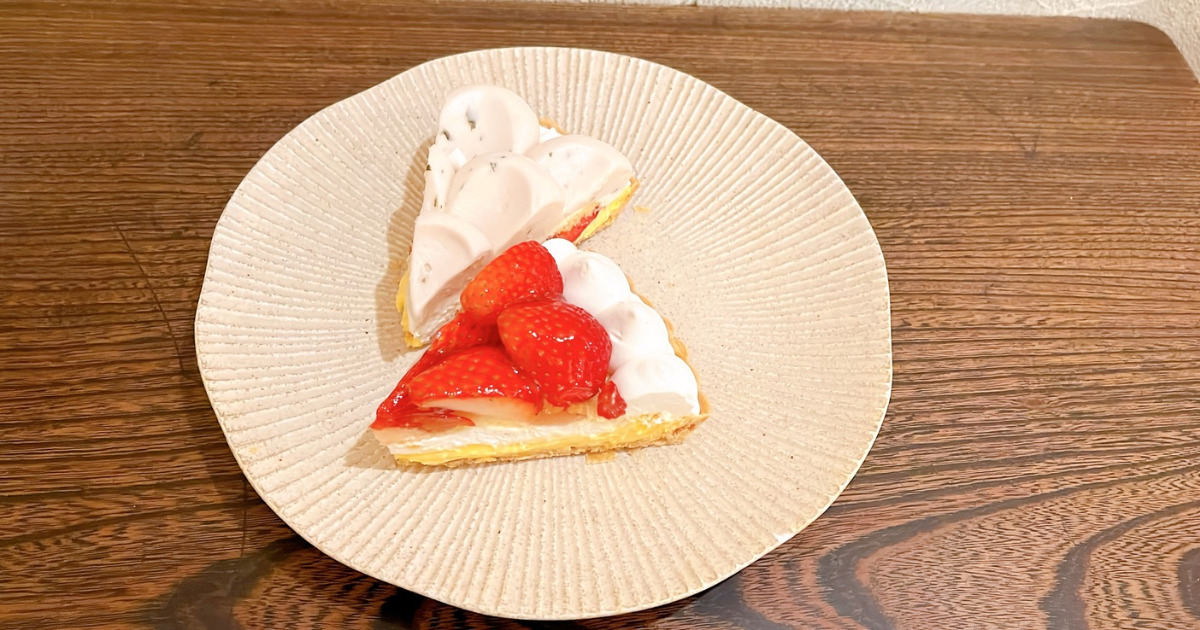 いちごのタルトと桜のタルトの2つのケーキを注文し、ワンプレートで提供。