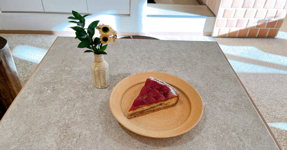 ボトムのタルトはサクサクと香ばしい。噛むたびに小麦の風味を感じられ、クッキーのような味わい。サワークリームを少し入れて、爽やかでコクのある仕上がりに。