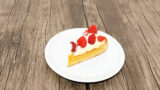 直径約10cm、高さ・厚さ約4cmの長方形チーズケーキ。